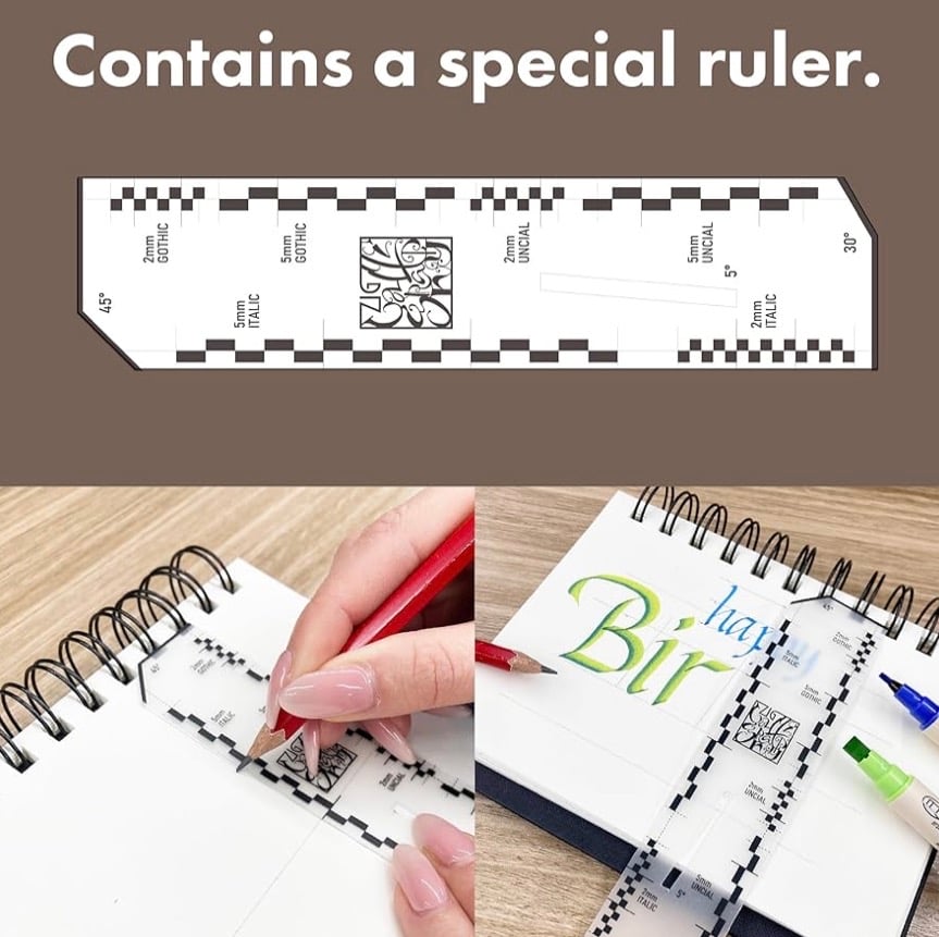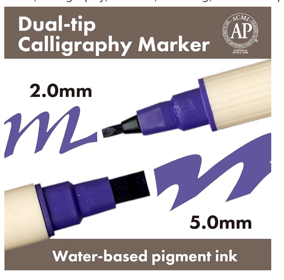 Set of 3 Calligraphy Markers, Title and Decoration Water-based pigment ink with 2.0 mm core and 5.0 mm lead twin type Includes original ruler Easy to use even for beginners Size: 6.8 x 3.0 x 0.5 inches (172 x 75 x 13 mm); Ink: Water-based pigment; Material: Pen/PP/Pes; Case: PP, Mat: Paper