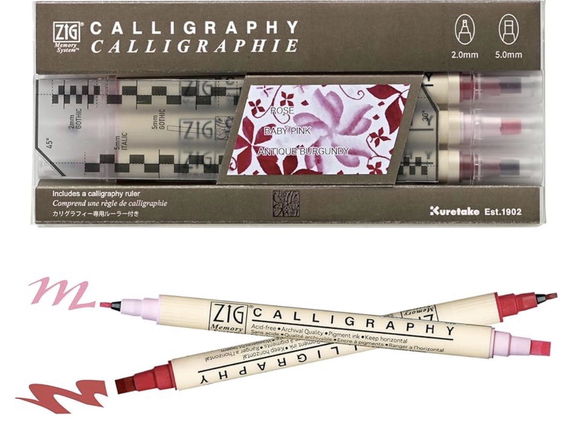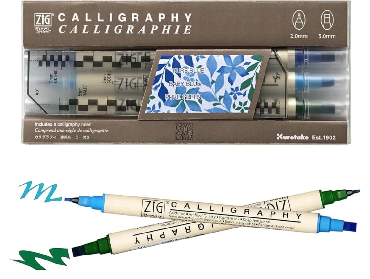 Kuretake Zig Calligraphy Dual Tip Marker Pens 3 colors set